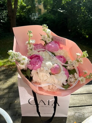Sæson baseret buket. GAIA vælger selv form og farver. Kontakt venligst GAIA hvis du har specifikke ønsker til farver eller andet.